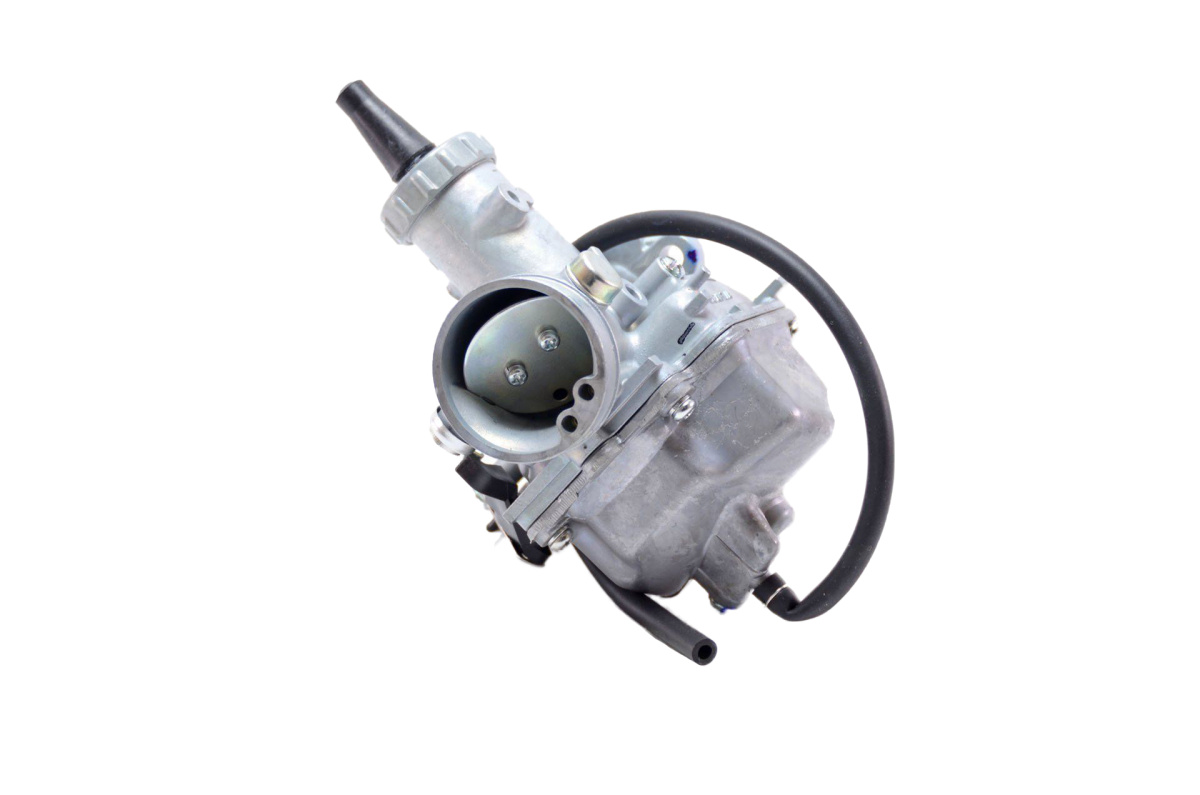 Карбюратор Mikuni VM 26, надежный и эффективный карбюратор для питбайков объемом от 140 до 170 см 3. Данный карбюратор штатно устанавливается на питбайки ведущих производителей. Карбюратор изготавливается Японской корпорацией Mikuni. Производственные мощности корпорации расположены в Китае.  Характеристики карбюратора: Фланцевое крепление к впускному коллектору двигателя. Диаметр впускного патрубка под воздушный фильтр 45 мм. В стоке, в карбюратор установлены жиклеры -главный 100 и жиклер холостого хода 20. Оснащен ступенчатым рычагом управления обогащением топлива. Управление обогащением производится регулировкой подачи воздуха в смесительную камеру. Mikuni VM 26 позволяет добиться максимальной отдачи двигателя во всех диапазонах работы, при правильно подобранных жиклерах и соответствующих регулировках. Применяется практически к любым двигателям питбайков: JMC, YCF, KAYO, AVANTIS, MOTOLAND, BSE.