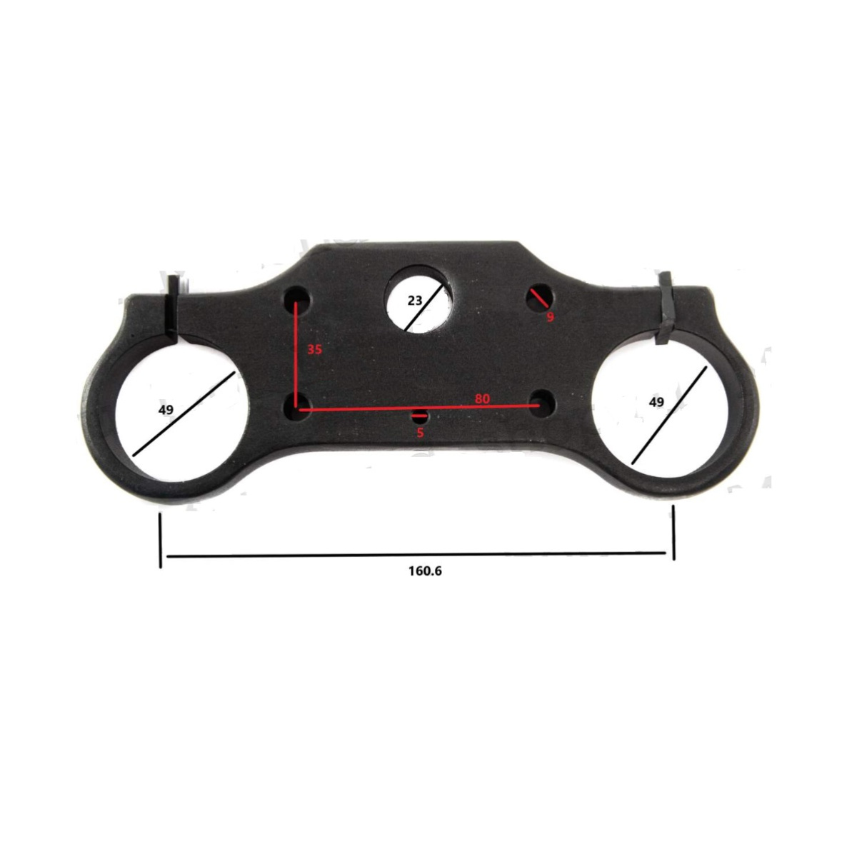 Траверсы для питбайка. В комплекте: траверсы верхняя. Диаметр захватов верхней траверсы 49 мм. Межоосевое расстояние по центрам захватов 160 мм.
